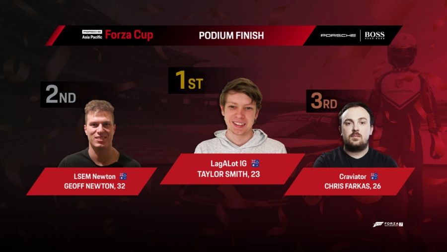 “The Porsche Asia Pacific Forza Cup has been relentlessly action-packed right from the start, and the two races from the Grand Finals were even more intense than I’d imagined! Not only is it an incredible honour to be the first titleholder of the tournament, it’s also particularly meaningful as it’s my very first win as well. I can’t wait to test myself in an actual Porsche cockpit soon – it’ll be my first trip out of Australia, and I’m thrilled that it will take me straight to such an iconic racing circuit,” said LagALot IG/ Taylor Smith, from Australia.